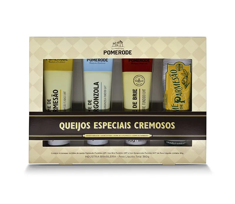 KIT 4 SABORES CREME DE PARMESAO - KRAEUTERKAESE, GORGONZOLA, PARMESAO, BRIE